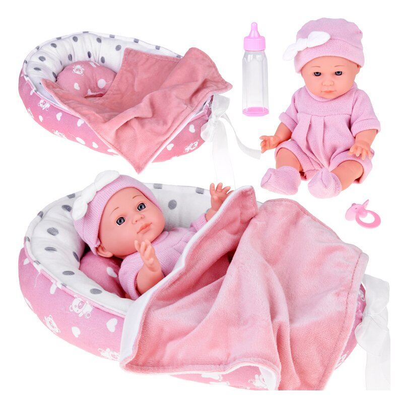 ⭐ Papusa cu Cosulet si Accesorii – Roz ❤️✨ Descopera bucuria jocului de ingrijire cu aceasta papusa adorabila in cosulet , perfecta pentru micile „mamici” care iubesc sa imite activitatile adultilor ⭐. Cu un chip dulce, brate si picioare mobile , aceasta papusa ofera o experienta de joc realista si captivanta . ❤️ Caracteristici principale ✨ Papusa realistă de 30 cm – imita perfect un nou-nascut, cu tinuta roz pastelata si caciulita cu fundita alba ✔️ Brate si picioare mobile – pentru diferite pozitii de joaca Cosulet confortabil – cu perna si patura moale, decorat cu fundita alba ⭐ Accesorii pentru ingrijire – biberon si suzeta Materiale sigure si placute la atingere – plastic moale, haine si accesorii detasabile si lavabile ⚙️ Detalii suplimentare Tinuta papusii: salopeta tricotata roz, sosete asortate Cosulet dimensiuni: 39 × 25 × 12 cm – perfect pentru papusa Jocul devine mai realist si captivant datorita combinatiei dintre papusa, patut si accesorii ✔️ Beneficii pentru copii Stimuleaza imaginatia si creativitatea Dezvolta empatia si abilitati de ingrijire Ofera ore intregi de joaca educativa si distractiva Perfect pentru jocuri de rol si imitarea activitatilor adultilor ❤️ Cadoul perfect Papusa cu Cosulet si Accesorii – Roz este alegerea ideala pentru cadouri de zi de nastere, sarbatori sau orice ocazie speciala ❤️✨. Vine intr-o cutie atractiva , gata sa incante fiecare copil si sa transforme joaca intr-o experienta educativa si amuzanta ⭐