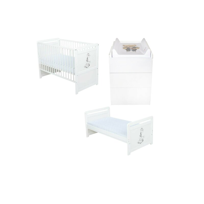 Amenajarea camerei copilului este un pas esential in pregatirea unui spatiu sigur, confortabil si functional pentru cei mici. Setul de mobilier pentru copii, format din pat, saltea si comoda cu masuta de infasat, este conceput pentru a raspunde nevoilor atat ale bebelusului, cat si ale parintilor. Fiecare element imbina designul modern cu functionalitatea, oferind un mediu cald, prietenos si adaptat etapelor de crestere ale copilului. Materialele folosite sunt atent selectionate, non-toxice si durabile, asigurand siguranta si confortul zilnic. Acest set reprezinta alegerea ideala pentru parintii care cauta un mobilier complet, practic si estetic pentru camera copilului. ✨ Patutul: ❤️ Patutul Nadia II Girafa imbina perfect functionalitatea moderna cu un design atractiv si cald, fiind fabricat din lemn masiv de pin de calitate superioara. Culoarea sa neutra si liniile simple il fac usor de integrat in orice decor interior, oferind in acelasi timp o atmosfera linistitoare si confortabila pentru cel mic. ❤️ ✨ Fiind un produs multifunctional, acest patut este conceput pentru a insoti copilul inca din primele zile de viata si pana la varsta de 5-6 ani. ✨ ✔️ Se transforma usor din patut de bebelus in pat de junior, prin indepartarea lateralelor lungi si a segmentelor inferioare ale lateralelor scurte. Astfel, investitia intr-un singur produs aduce beneficii pe termen lung, oferind un spatiu sigur si confortabil adaptat nevoilor in continua schimbare ale copilului. ✨ ✔️ Patutul este realizat cu grija pentru sanatatea copilului. Este tratat cu vopsele si lacuri conform normelor si reglementarilor Europene si nu reprezinta nici un pericol pentru sanatatea celui mic. Somiera poate fi reglata la 3 inaltimi diferite (20 cm / 37 cm / 54 cm); cu cat varsta copilului este mai mare cu atat inaltimea saltelei trebuie sa fie mai joasa pentru siguranta acestuia. ✔️ Nivelul superior este ideal pentru nou-nascuti, oferind acces facil pentru parinte. Nivelul intermediar este util cand bebelusul incepe sa se ridice in sezut, iar cel inferior este dedicat perioadei in care copilul invata sa stea in picioare. Una dintre lateralele patutului este prevazuta cu 3 bete detasabile , fiind un ajutor pentru bebelus atunci cand invata sa coboare si sa se urce singur . ✔ Se poate monta usor. ✔ Datorita posibilitatii de transformare in pat junior, copilul poate dormi in patul Nadia II Girafa de la nastere pana la varsta de 5-6 ani. Se transforma foarte usor dintr-un patut de bebelus intr-un pat de junior, prin indepartarea lateralelor lungi si a partilor inferioare ale lateralelor scurte. ✔ Este stabil si sigur. ✔ Gratarul de sustinere este rezistent. ⭐ Patutul Nadia II Girafa nu este doar un loc de odihna, ci o piesa de mobilier gandita pentru dezvoltarea armonioasa si in siguranta a copilului. Datorita versatilitatii sale si calitatii materialelor, reprezinta o alegere excelenta pentru orice familie care doreste sa combine estetica, siguranta si functionalitate intr-un singur produs. ⭐ ✅ Date tehnice: Dimensiuni interioare : 120 cm x 60 cm x 89.5 cm Dimensiuni exterioare : 124 cm x 64 cm x 89.5 cm Inaltimea pentru suportul de saltea , masurat de la podea: 20 cm, 37 cm , 54 cm. Inaltime patut : 89.5 cm Material: PIN solid + MDF Greutate : 12 kg ✔ Patutul indeplineste standardele europene stricte: ✔ EN 716-1 – privind siguranta patuturilor de copii. ✔ Dimensiunea ideala pentru salteaua acestui patut este de 120 x 60 cm. ✔ Produs fabricat in UE. ⚡ Atentie: Salteaua nu este inclusa in pret! Patutul nu este motat. Acesta se asambleaza usor cu ajutorul instructiunilor de montaj din colet. ✔ Producator: Babyneeds. ✨ Salteaua: Asigura-i bebelusului tau un somn linistit si sanatos cu Salteaua Cocos Confort de la BabyNeeds, creata special pentru a sustine dezvoltarea corecta a coloanei vertebrale si pentru a preveni acumularea de umiditate sau alergeni in patutul celui mic. Confectionata din materiale naturale si respirabile, aceasta saltea reprezinta o alegere ideala pentru parintii care pun accent pe siguranta, igiena si confort ✅Compozitie si Beneficii: ✔ Structura tripla : 2 straturi de fibre de cocos naturale – ofera sustinere ferma si o ventilatie excelenta; 1 strat central din burete moale – echilibru optim intre fermitate si confort; ✔ Pozitie ortopedica – Salteaua sustine corect coloana vertebrala a copilului in perioada critica de dezvoltare; ✔ Fibre de cocos – permit circulatia aerului si previn supraincalzirea corpului in timpul somnului; ✔ Proprietati antialergice si antibacteriene : Nu permite dezvoltarea acarienilor; Nu retine praf; Nu se incarca electrostatic; Ideala pentru bebelusii cu piele sensibila sau predispozitie la alergii. ✔ Husa detasabila si lavabila: Confectionata din material textil antialergic; Usor de intretinut – se poate scoate si spala , mentinand un mediu curat si sigur in patut; Permite o igiena optima pe termen lung; ✔ Recomandare de utilizare: Pentru o ventilatie mai buna si o durata de viata extinsa a saltelei, este recomandata rotirea periodica de pe o parte pe alta la fiecare schimbare de lenjerie. ✔ Dimensiuni si Specificatii: Dimensiune: 120 x 60 cm; Grosime: 10 cm; Potrivita pentru patuturi standard de 120×60 cm; Nivel de fermitate: mediu-ridicat; Fabricata in Romania. ✨ Comoda: ❤️ Comoda Waldi Qmini – Solutia ideala pentru economisirea spatiului si organizare eficienta! ❤️ Daca vrei sa creezi un spatiu ordonat si functional in camera bebelusului, comoda Waldi este alegerea perfecta pentru tine! Aceasta imbina designul modern, practicitatea si eficienta intr-un singur produs compact, ideal pentru orice tip de incapere. Cu un design elegant si functionalitate maxima, aceasta iti va transforma spatiul intr-un loc perfect organizat pentru toate nevoile bebelusului tau. ✅ Depozitare optimizata – Comoda Waldi este dotata cu 3 sertare spatioase , ideale pentru pastrarea scutecelor, hainelor, ju