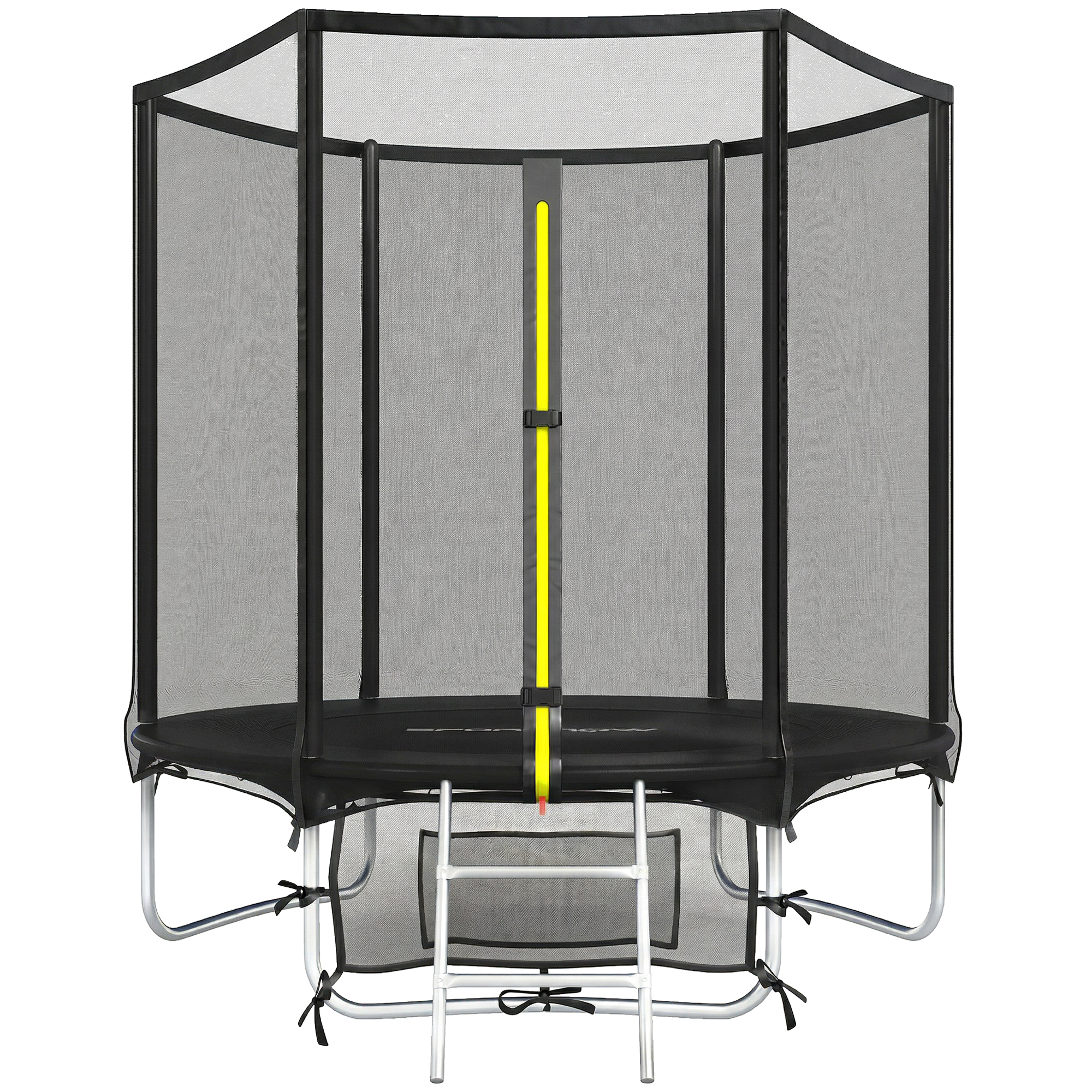 SPORTNOW Trambulină Exterior Ø183 cm Trambulină pentru Copii +6 Ani Adulți cu Plasă de Siguranță Scară cu 2 Trepte Negru | Aosom Romania